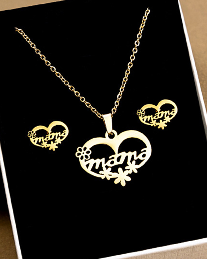 Mother's Day Hollow Out Heart Letter Mama Necklace & Earrings Jewelry Set
