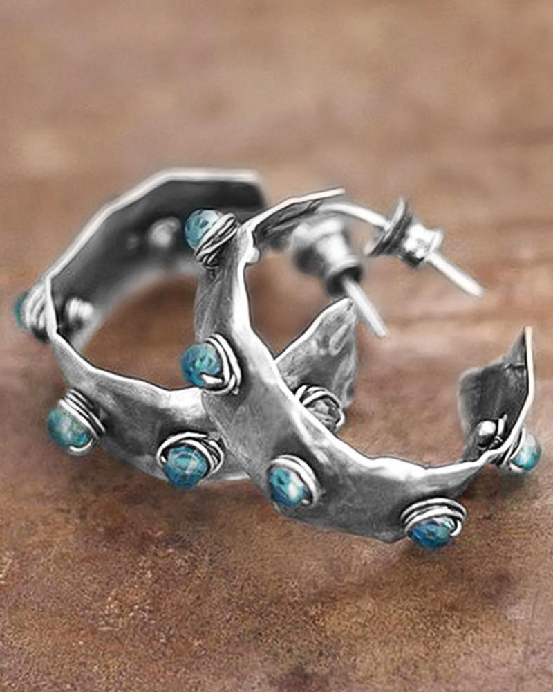1Pair Vintage Bohemian Faux Turquoise Hoop Earrings