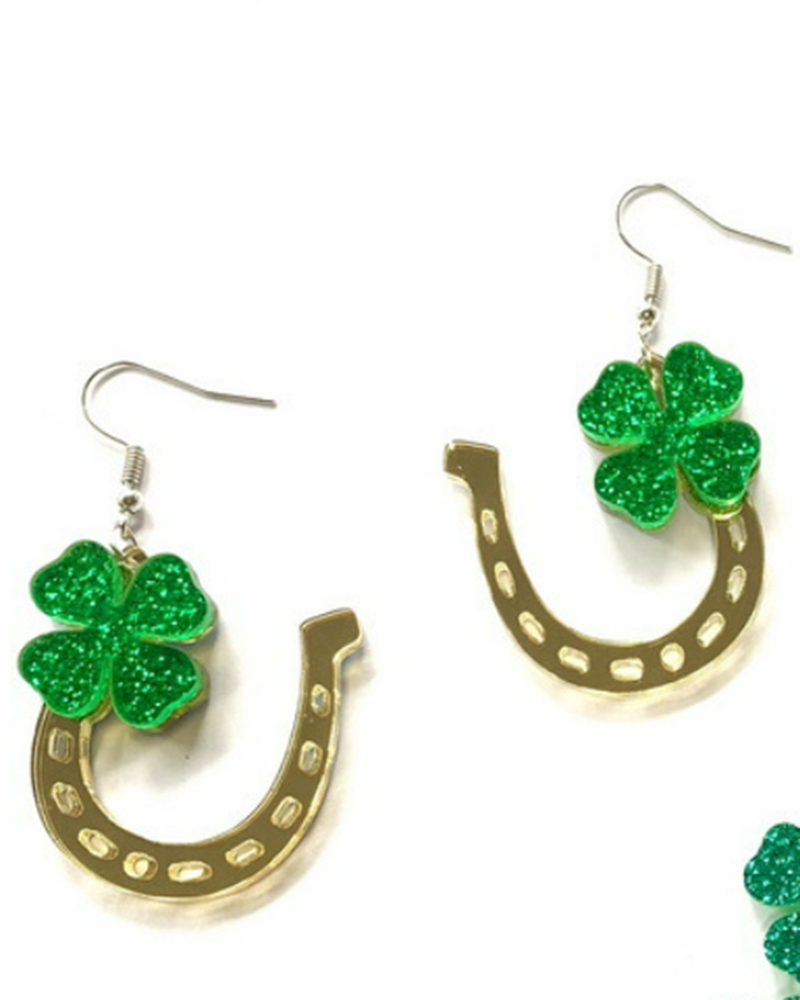 1Pair St. Patrick's Day Glitter Lucky Four Leaf Clover Shaped Drop Earrings