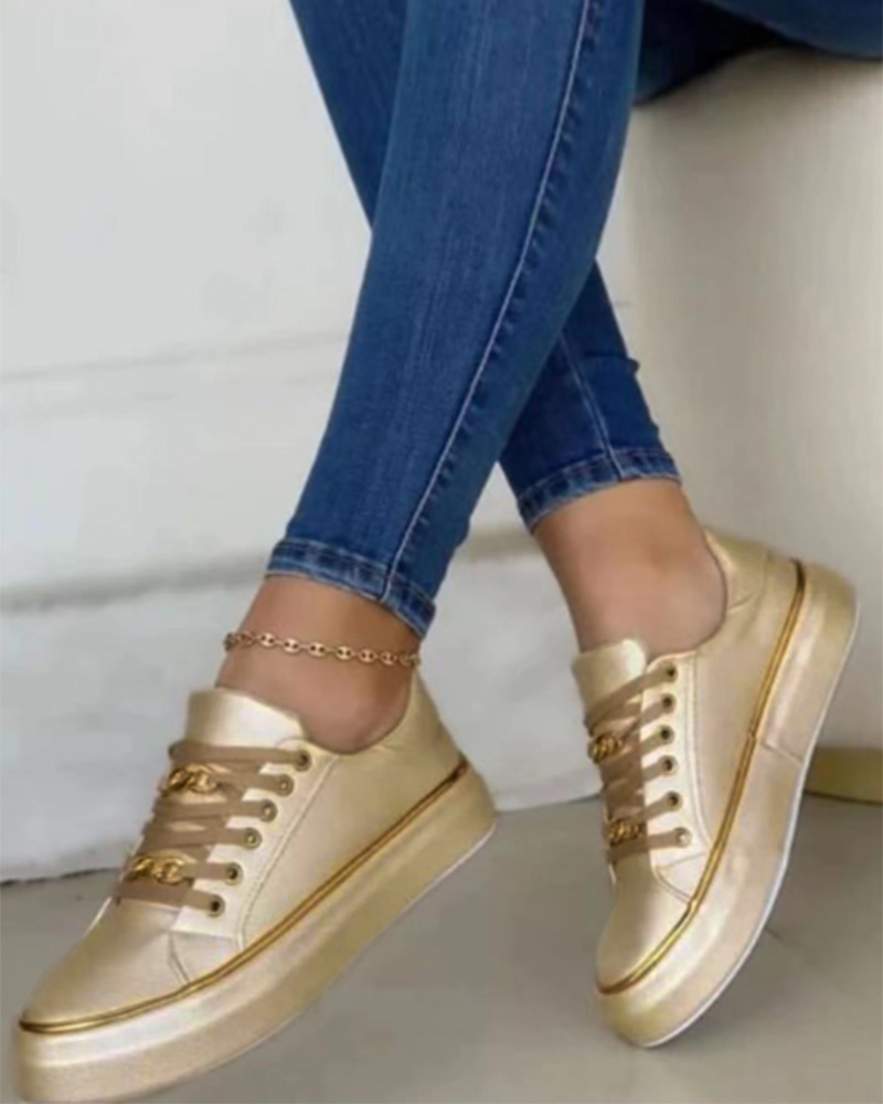 Chain Decor Lace-up Platform Casual Sports Sneakers