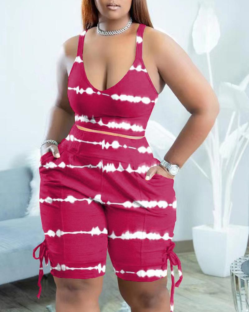 Style:Casual,Chic Type:Shorts Set Material:Polyester Neckline:V-Neck Sleeve Style:Sleeveless Length:Above Knee Pattern Type:Tie Dye Decoration:Criss Cross,Eyelet,Lace-up,Pocket Fit Type:Regular Occasion:Daily,Vacation Package Include:1*Shorts Set