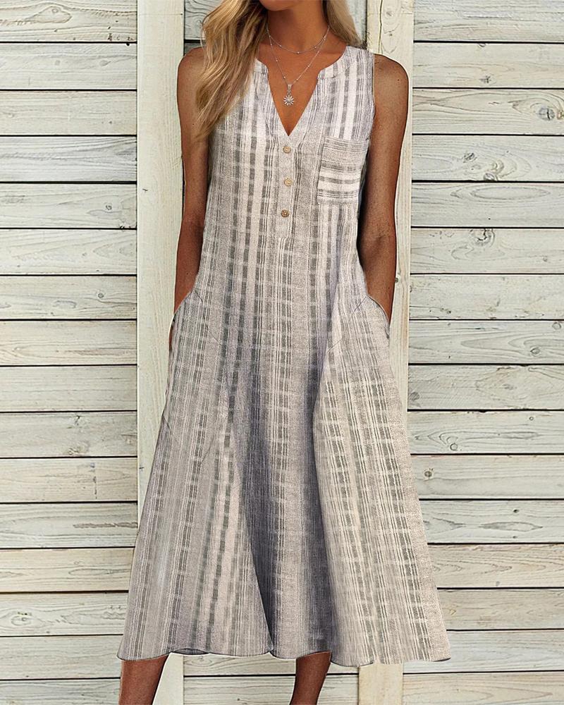 Style:Casual Type:Flared Material:Polyester Neckline:V-Cut Sleeve Style:Sleeveless Length:Mid-Calf Pattern Type:Plaid Decoration:Button,Pocket Fit Type:Oversized Occasion:Daily,Vacation Package Include:1* Dress