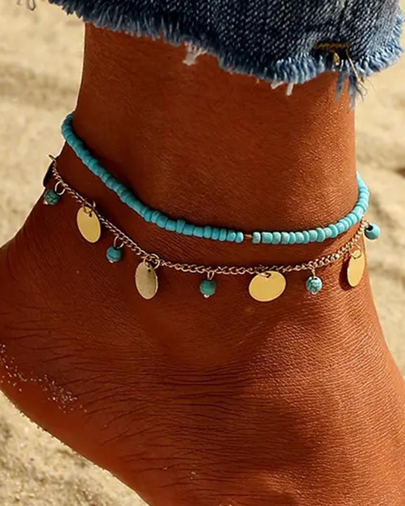 2pcs Stackable Beaded Disc Bohemian Summer Beach Anklets Set