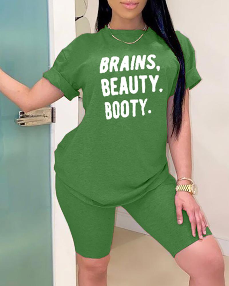 Letter Print Short Sleeve Top & Shorts Set