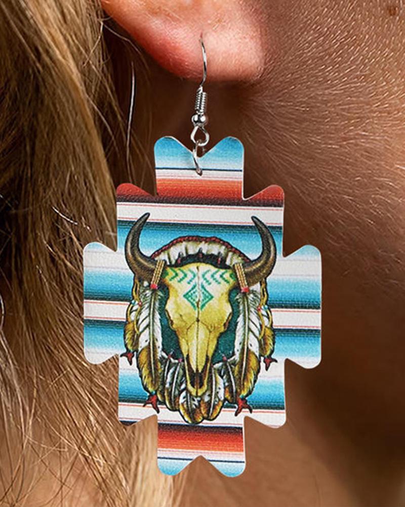 1Pair Vintage Cowboy Geometric Ox Head Print Cowboy Style Drop Earrings