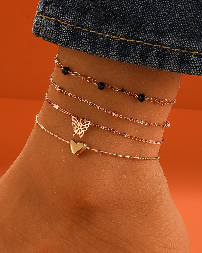 Style:Chic,Boho Material:Alloy Pattern Type:Butterfly,Heart Occasion:Daily,Beach,Vacation Package Include:4PCS Anklets Set