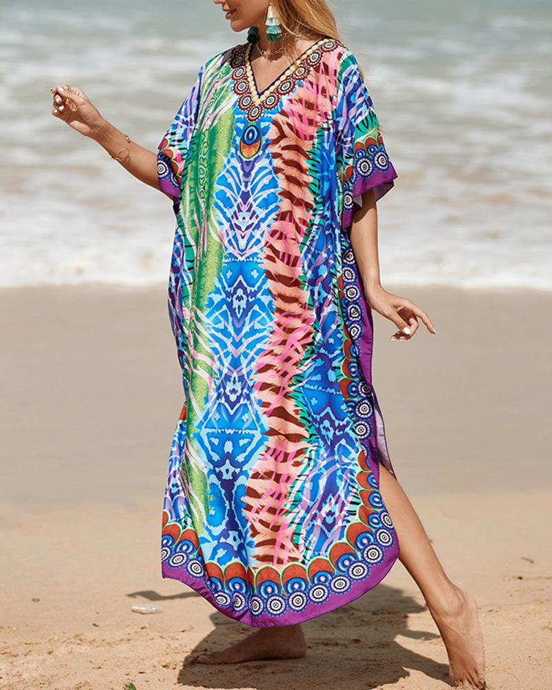 Disc Pattern Hollow Out Slit Cover Up Dress