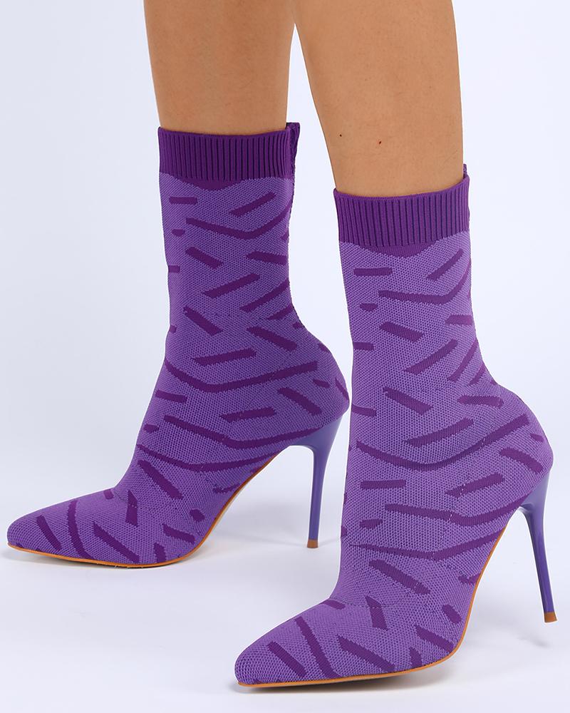 Abstract Print Stiletto Heel Ankle Boots