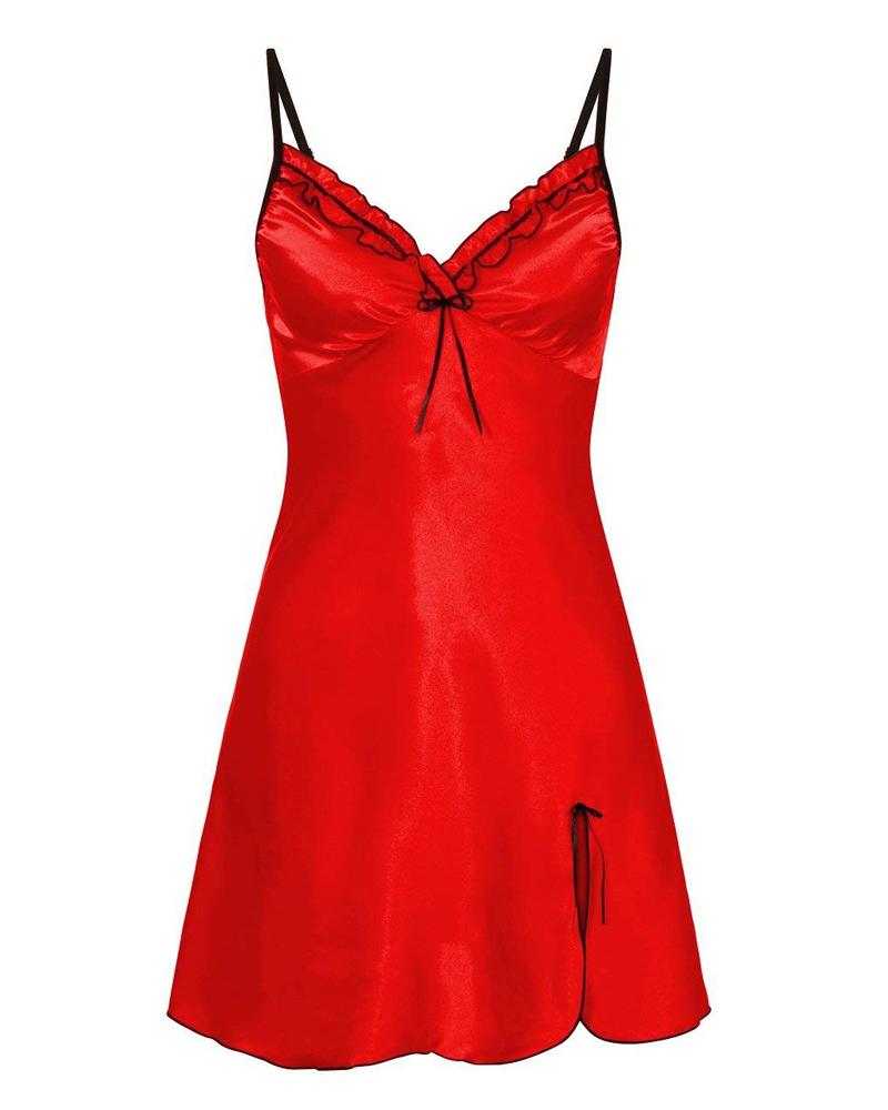 Spaghetti Strap Bowknot Decor Slit Sleep Dress