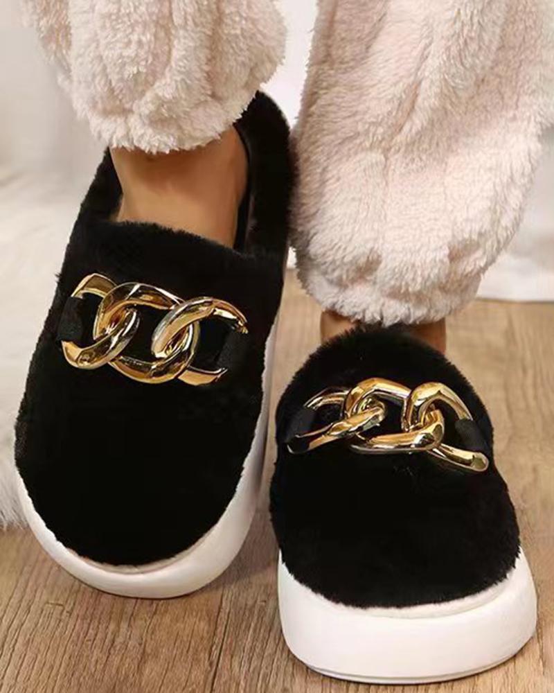 Chain Decor Fuzzy Round Toe Soft Slippers