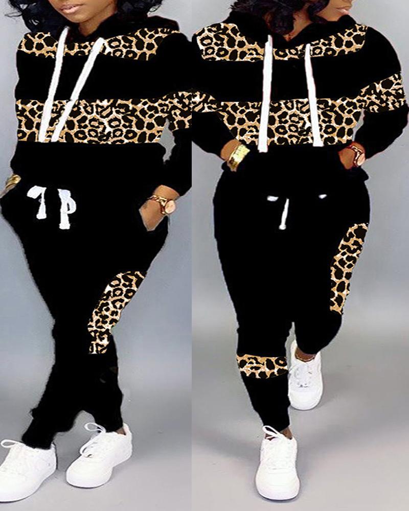 Style:Casual,Sporty Type:Sweatpants Sets,Sweatshirt Sets Material:Polyester Neckline:Hooded Sleeve Style:Long Sleeve Length:Long Pattern Type:Leopard Decoration:Drawstring,Pocket Fit Type:Regular Occasion:Daily Package Include:1*Pants Set