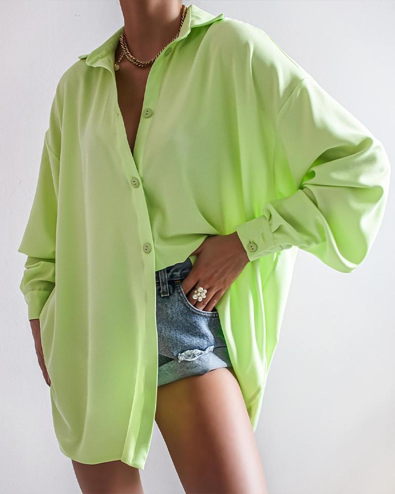 Style:Casual Type:Shirt Material:100%Polyester Neckline:Turn-down Collar Sleeve Style:Long Sleeve Length:Regular Pattern Type:Plain Decoration:Button Fit Type:Oversized Occasion:Daily Package Include:1*Shirt