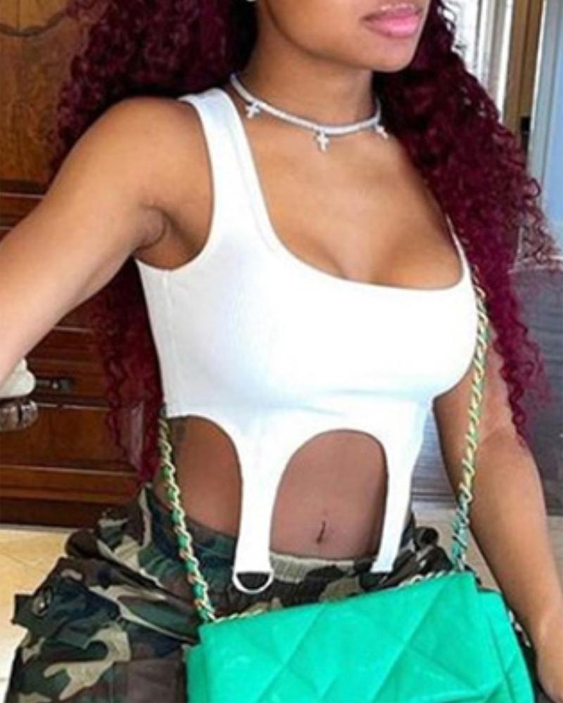 Zipper Design Spaghetti Strap Tank Top