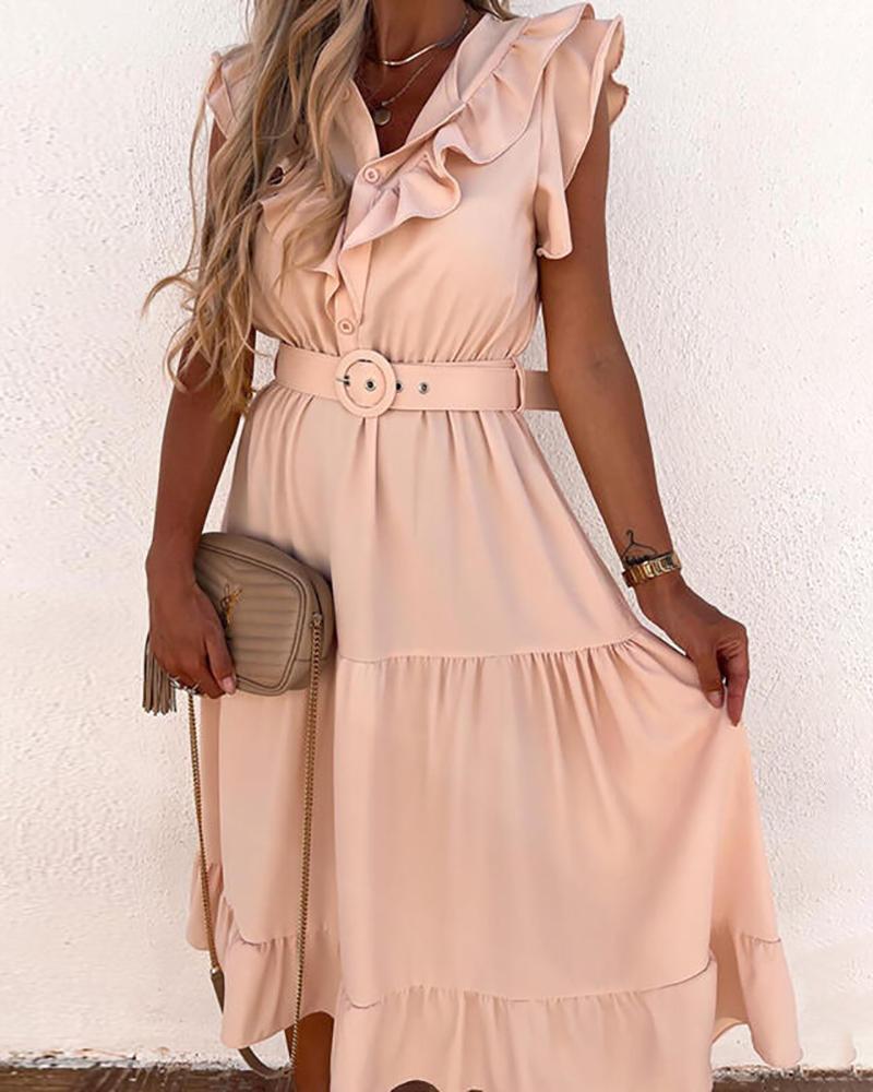 Ruffle Hem Button Design Sleeveless Casual Dress