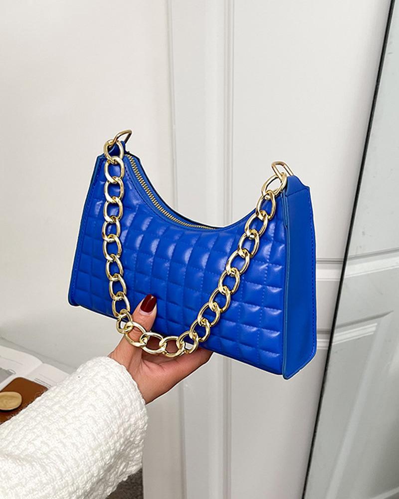 Quilted Chain Strap Baguette Bag