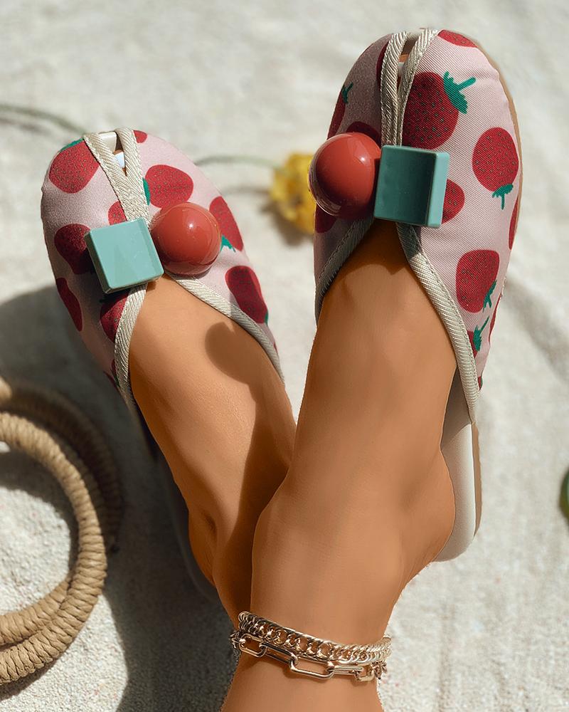 Style:Casual,Chic Type:Slippers Material:PU Pattern Type:Fruit & Vegetable,Geometric Occasion:Daily Toe:Peep Toe Heel Height:Flat Package Include:1* Slipper