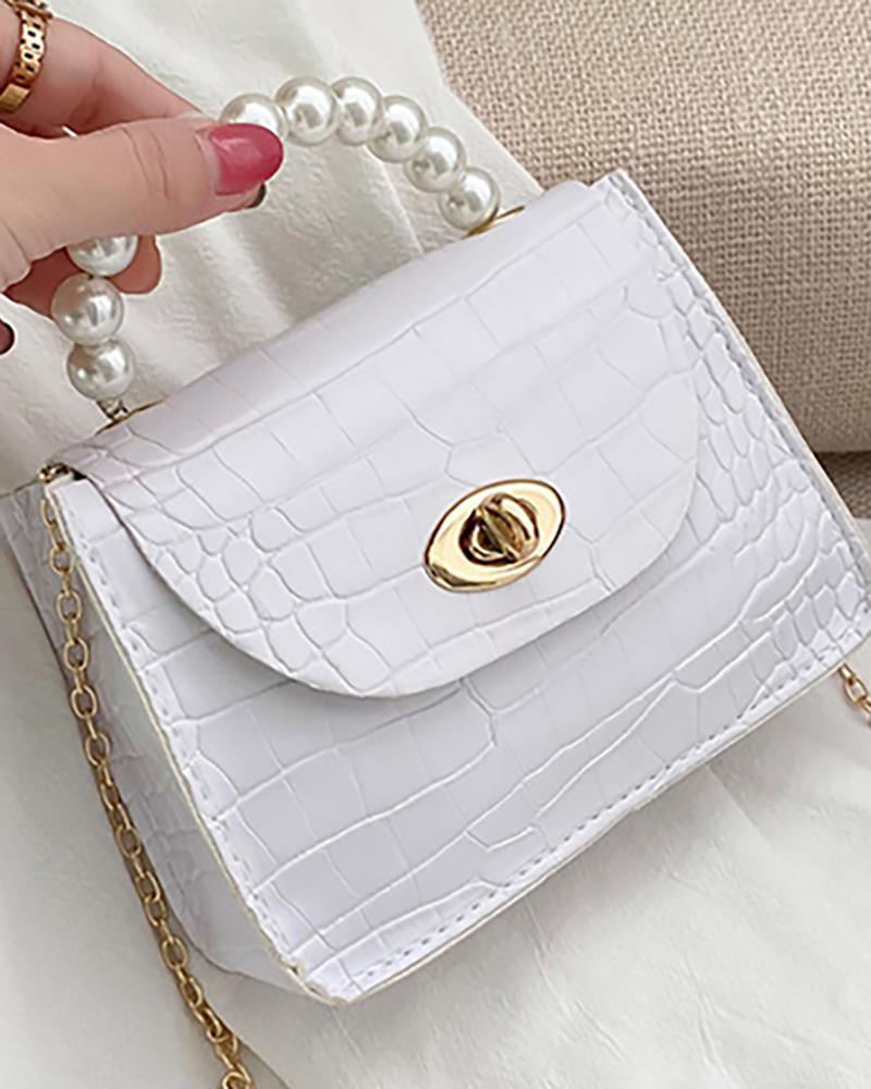 Style:Chic Type:Satchel Bag Material:PU Pattern Type:Crocodile Decoration:Beaded,Chain Occasion:Daily,Night Out,Party Package Include:1*Bag SIZE: L12.5cm x H9cm