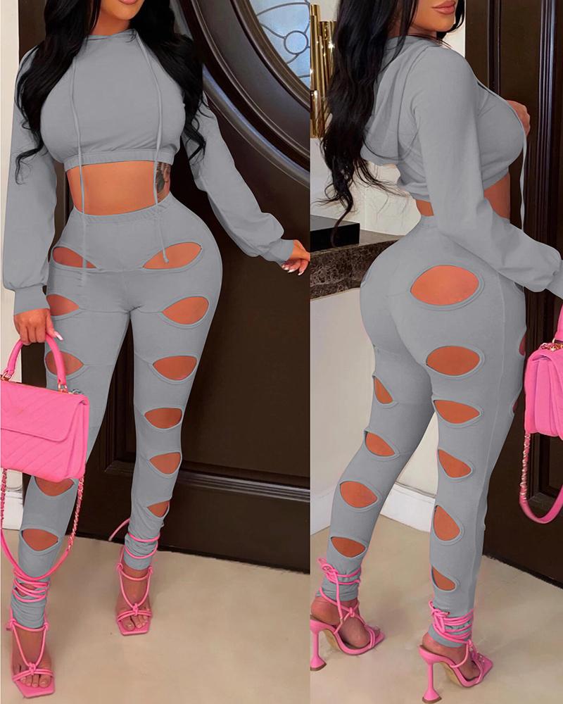 Long Sleeve Hooded Top & High Waist Cutout Pants Set