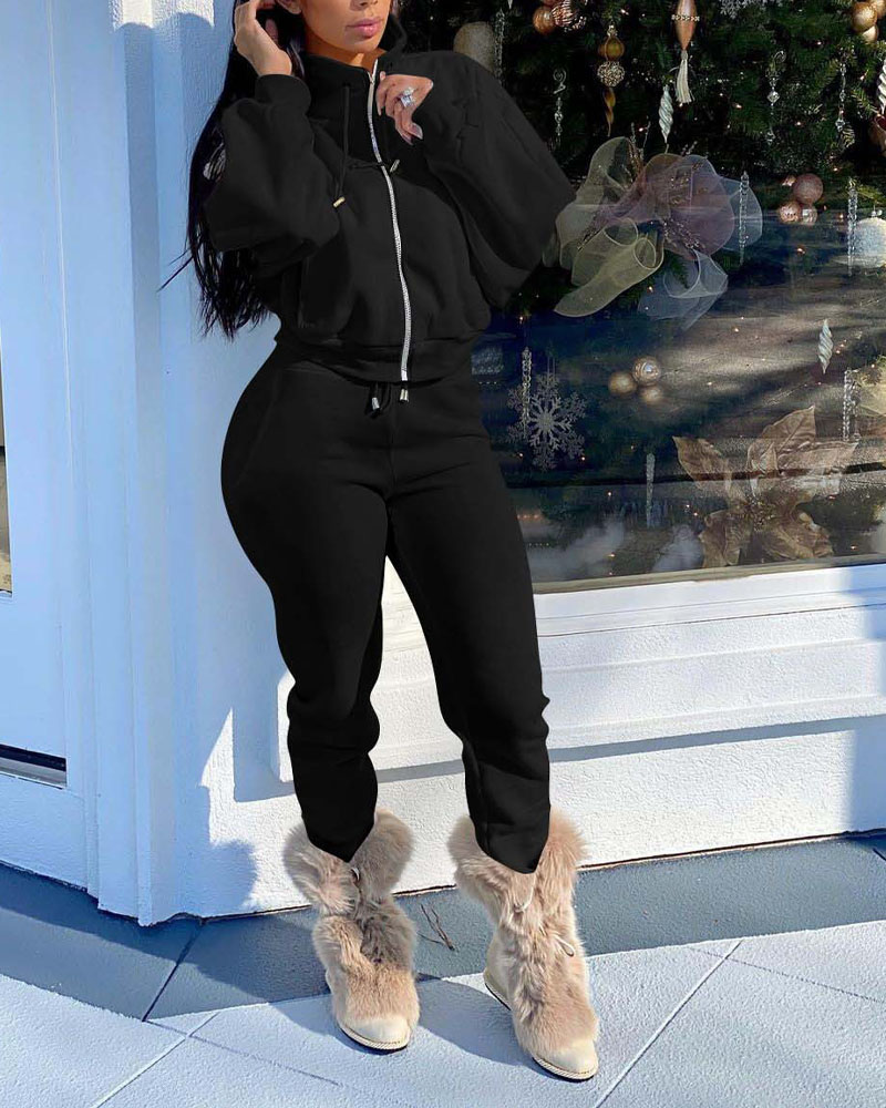 Style:Casual,Sporty Type:Sweatpants Sets,Sweatshirt Sets,Pants Sets Material:95%Polyester,5%Spandex Neckline:Stand Collar Sleeve Style:Long Sleeve Length:Long Pattern Type:Plain Decoration:Drawstring,Pocket,Zipper Fit Type:Regular Occasion:Daily Package Include:Pants Set