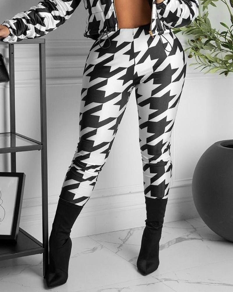 Style:Chic,Elegant Type:Skinny Pants Material:Polyester Length:Long Pattern Type:Houndstooth Fit Type:Skinny Occasion:Daily,Work Package Include:1*Pants (without coat)