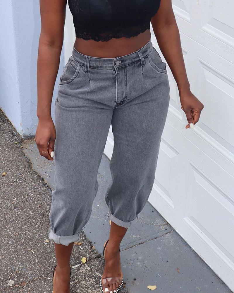 Single Button Pocket Design Casual Jeans