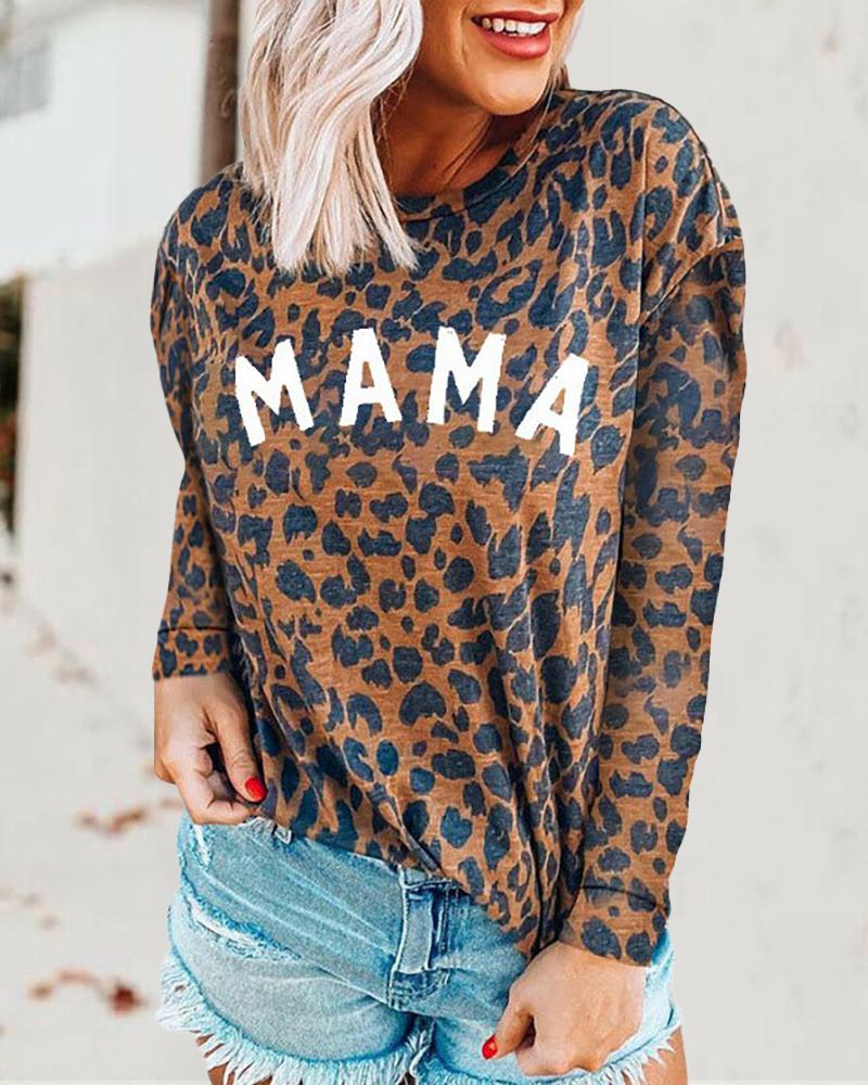 Letter Cheetah Print Long Sleeve T-Shirt