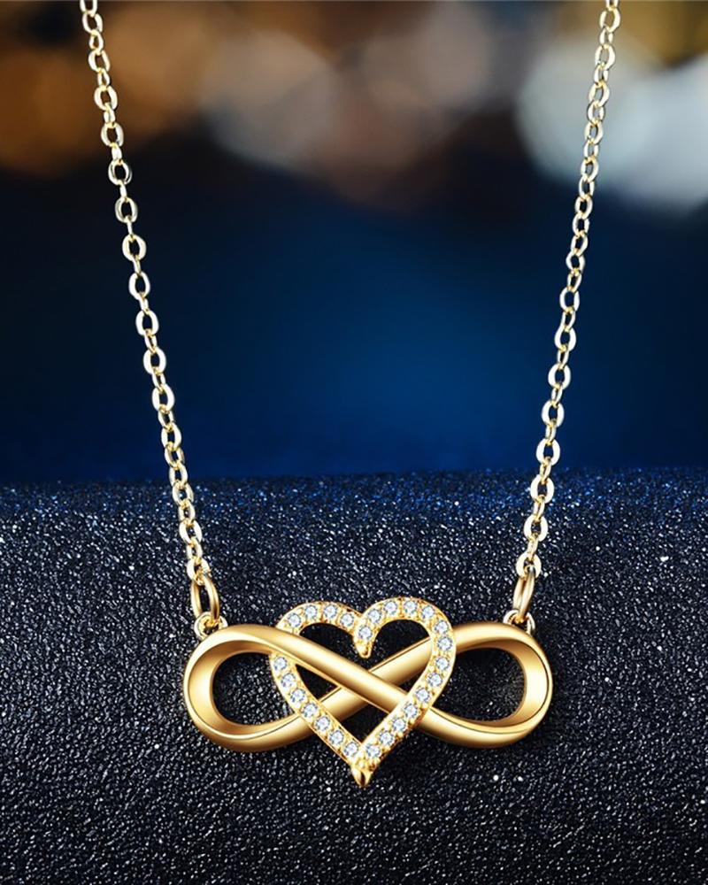 Lucky Eight & Heart Studded Pendant Chain Necklace