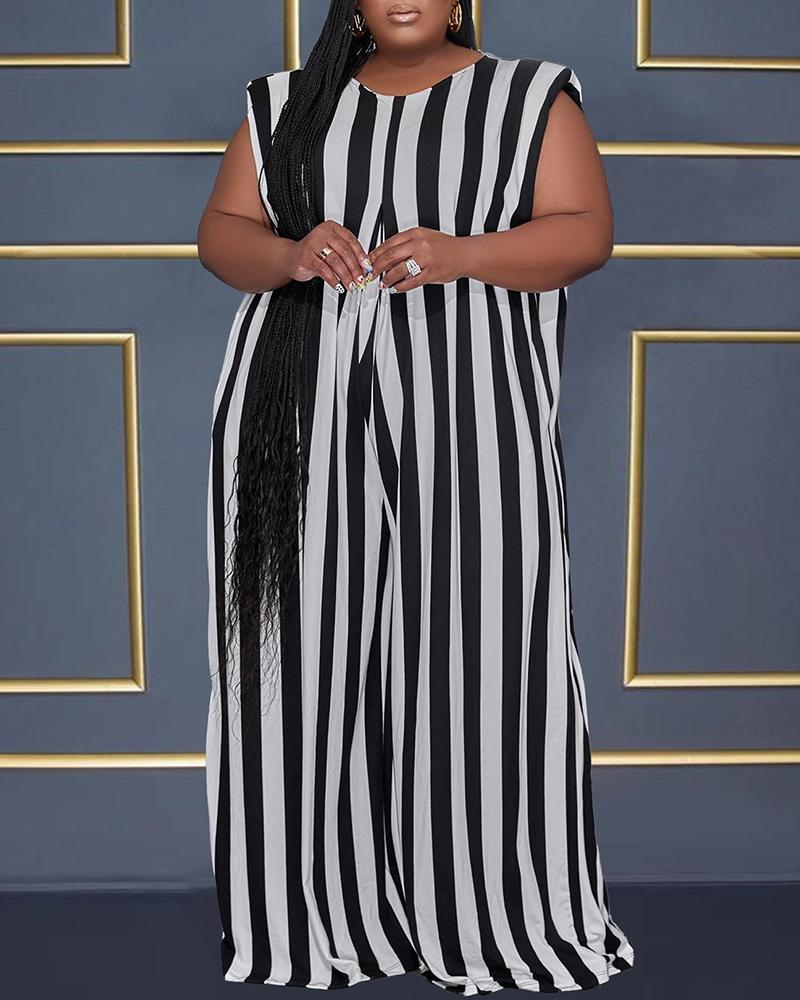 Plus Size Striped Cap Sleeve Wide Leg Jumpsuit