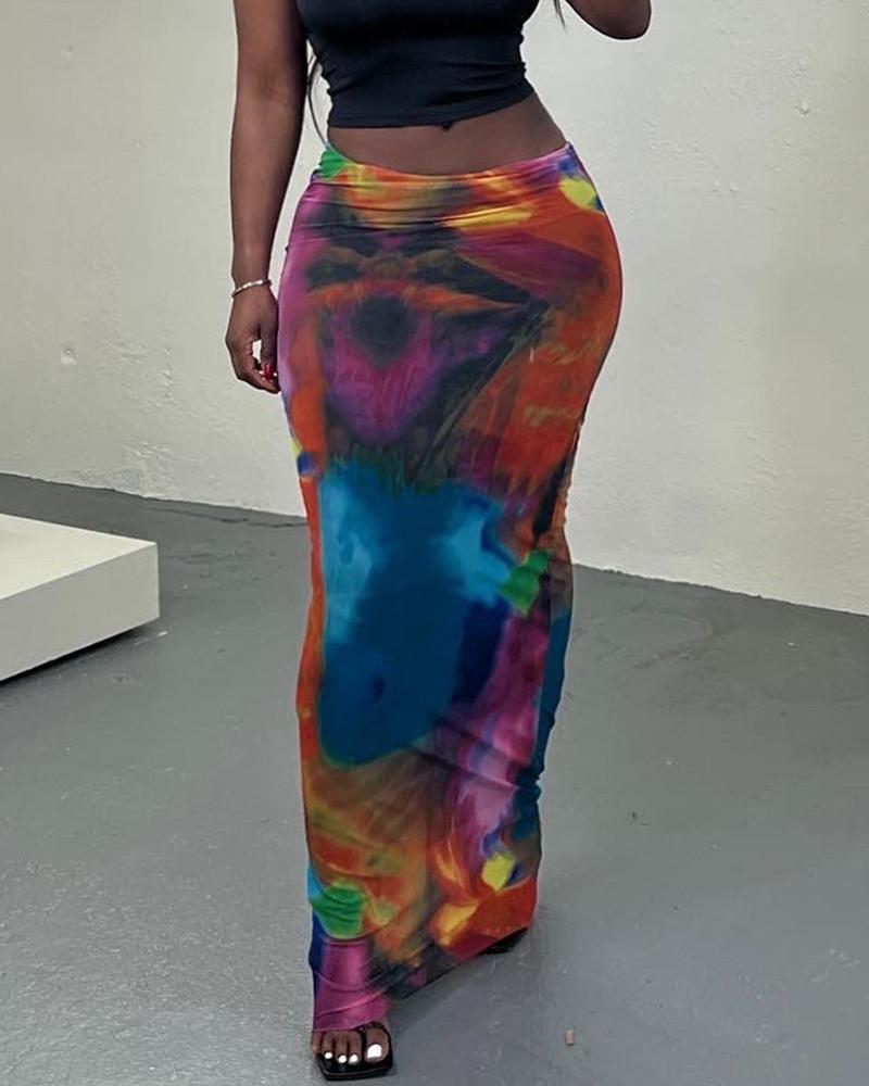 Camouflage Print Pocket Design Ruched Maxi Skirt