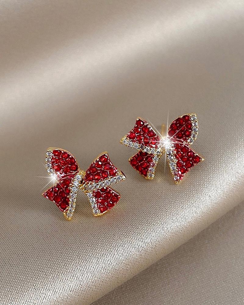 1Pair Christmas Rhinestone Bowknot Shaped Earrings