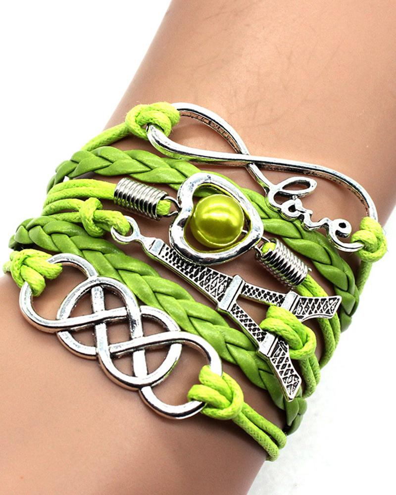 1pcs Multilayer Hollow Heart Faux Pearl Decor Eiffel Tower Love Letter Design Bohemian Braided Bracelet