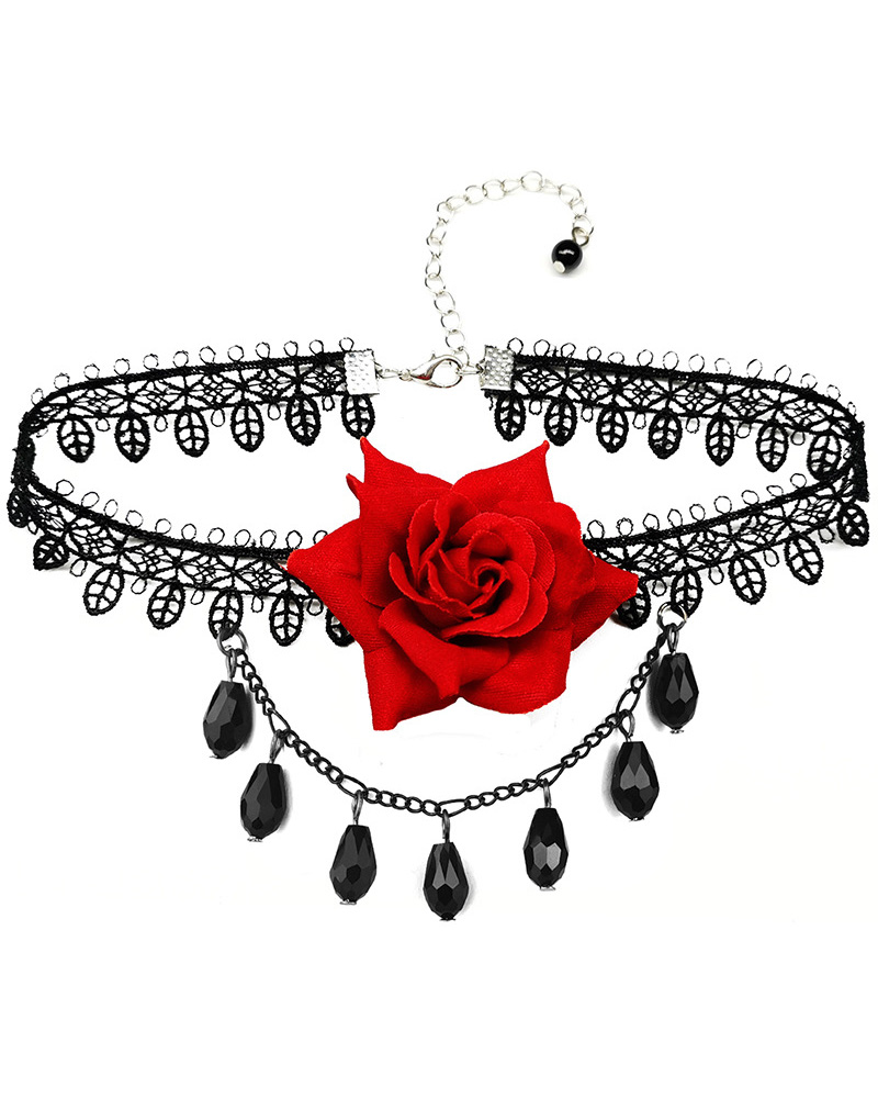 Style:Chic,Vintage Type:Chokers Material:Alloy Pattern Type:Floral Decoration:Beaded,Lace Occasion:Halloween,Night Out,Party Package Include:1* Choker