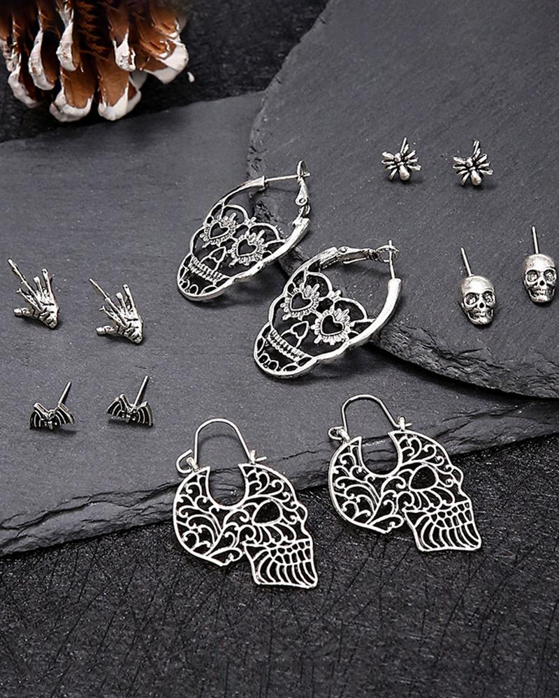 6Pairs Halloween Hollow Skull Head Stud Earrings Set