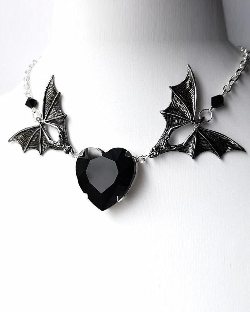 1pc Halloween Gothic Bat Decor Heart Pendant Necklace