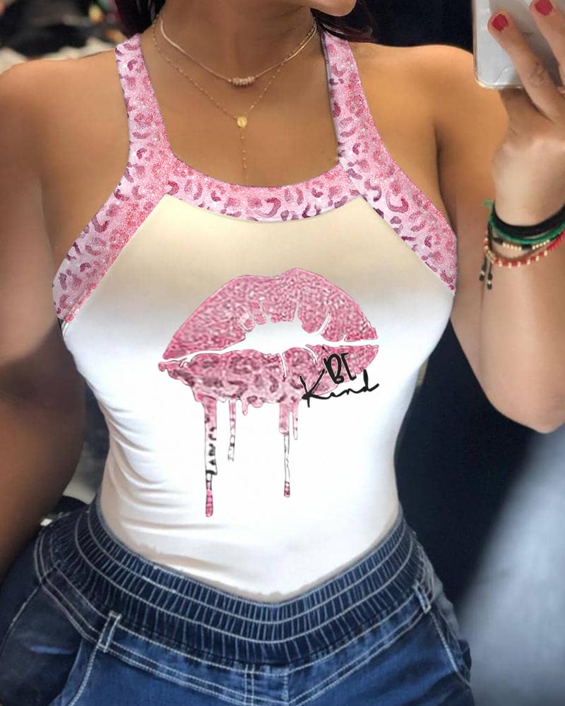 Be Kind Leopard Lip Print Bowknot Decor Tank Top