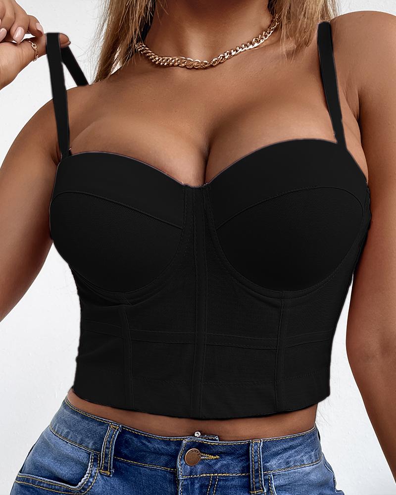 Style:Chic,Sexy Type:Corset Top Material:Polyester Neckline:V-Neck Sleeve Style:Spaghetti Strap Length:Crop Pattern Type:Plain Fit Type:Skinny Occasion:Daily Package Include:1*Top