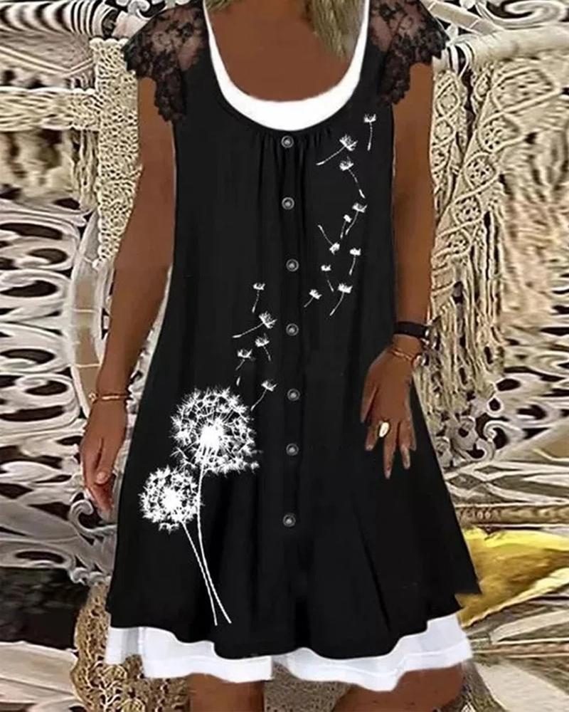 Dandelion Print Contrast Lace Casual Dress