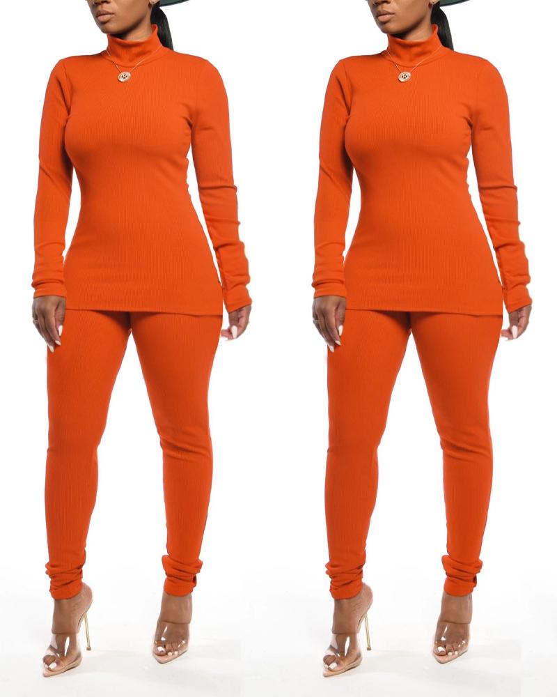 Long Sleeve High Neck Top & Pants Set