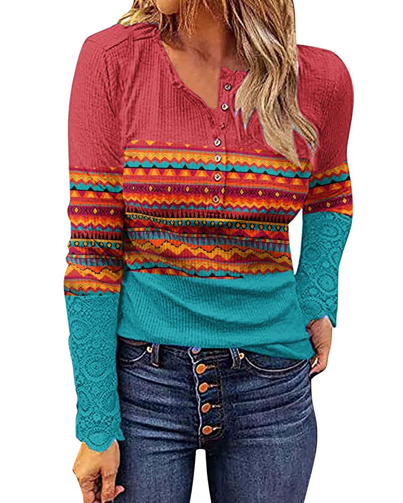 Style:Chic,Vintage Type:Tee Material:Polyester Neckline:Round Neck Sleeve Style:Long Sleeve Length:Regular Pattern Type:Tribal Fit Type:Regular Occasion:Daily Package Include:1*Top
