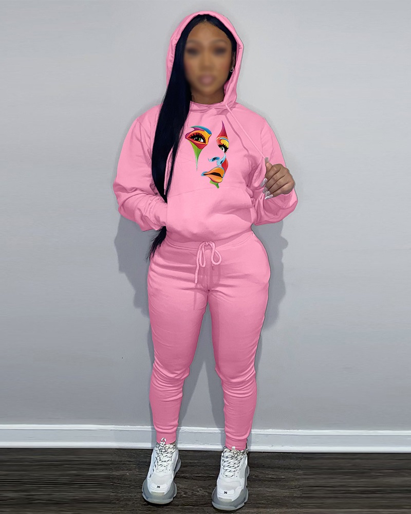 Style:Casual,Sporty Type:Sweatpants Sets,Sweatshirt Sets Material:Polyester Neckline:Hooded Sleeve Style:Long Sleeve Length:Long Pattern Type:Abstract,Figure Decoration:Drawstring,Pocket Fit Type:Regular Occasion:Daily Package Include:1*Pants Set