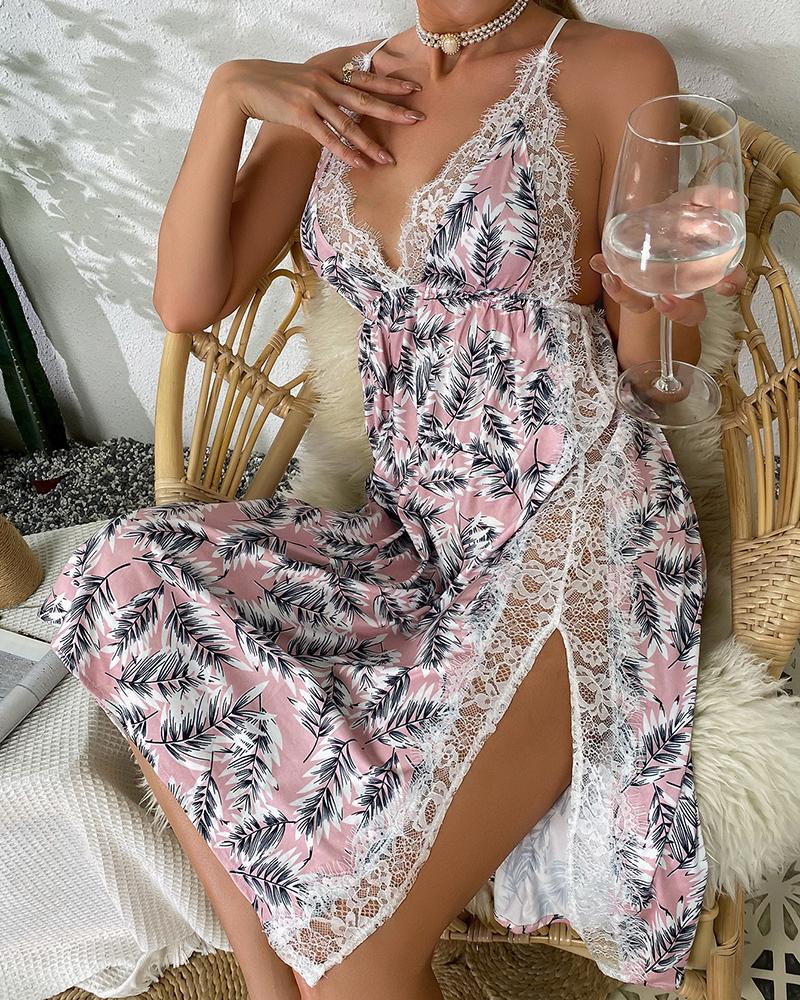 Lace Trim Bowknot Decor Slit Sleep Dress