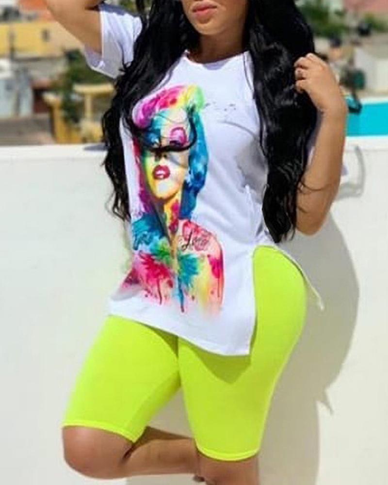 Plus Size Ink Splash Print Split Hem Top & Shorts Set