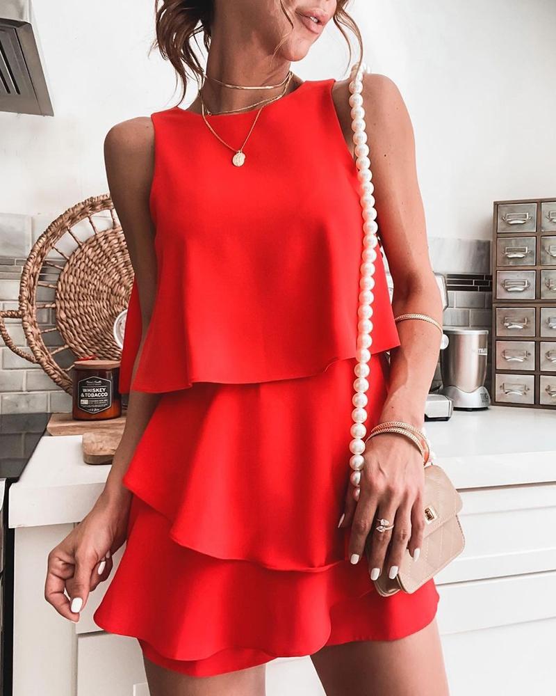 Style:Casual Type:Romper Material:Polyester Neckline:O-neck Sleeve Style:Sleeveless Length:Above Knee Pattern Type:Plain Decoration:Asymmetrical Fit Type:Regular Occasion:Daily Package Include:1*Romper