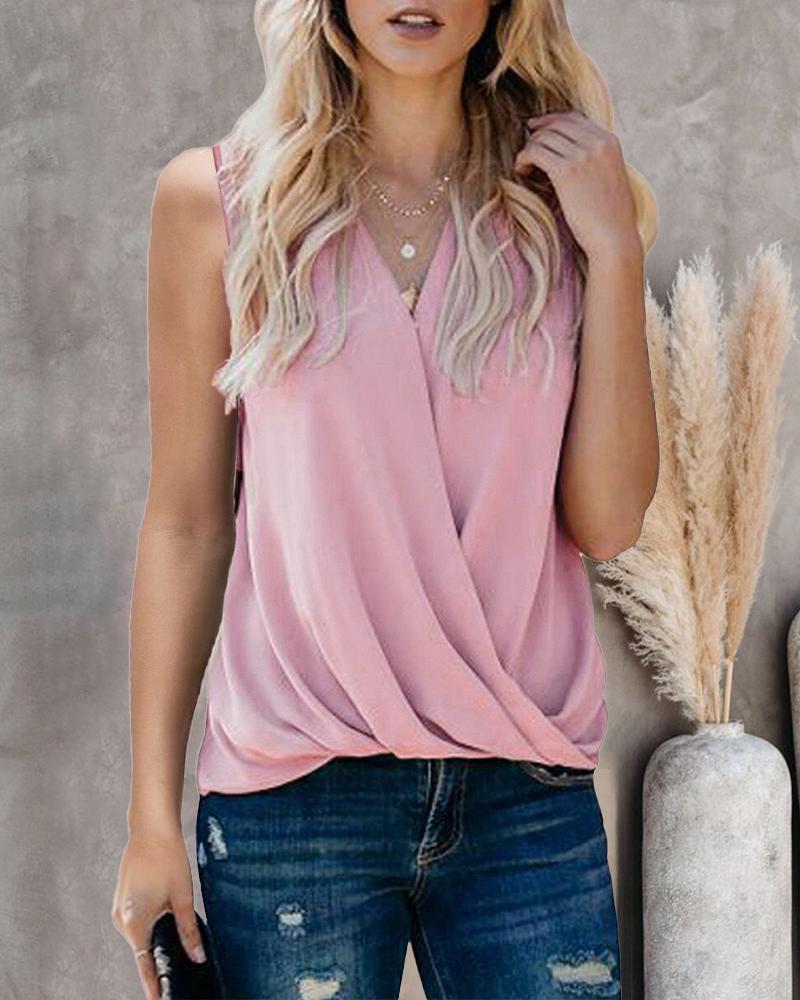 Style:Casual,Chic Type:Tank Material:Polyester Neckline:V-Neck Sleeve Style:Sleeveless Length:Regular Pattern Type:Plain Decoration:Draped Fit Type:Regular Occasion:Daily Package Include:1*Top
