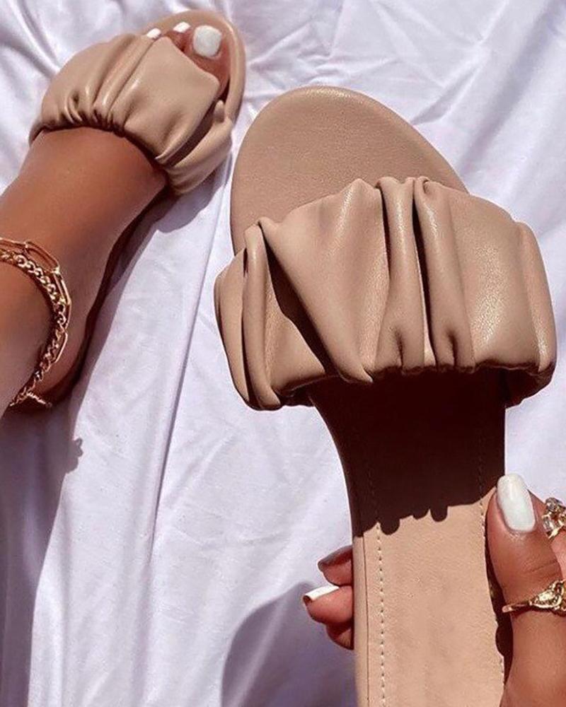 Style:Chic Type:Slippers Material:PU Pattern Type:Plain Decoration:Ruched Occasion:Daily Toe:Round Toe Heel Height:Flat Package Include:1*Slippers