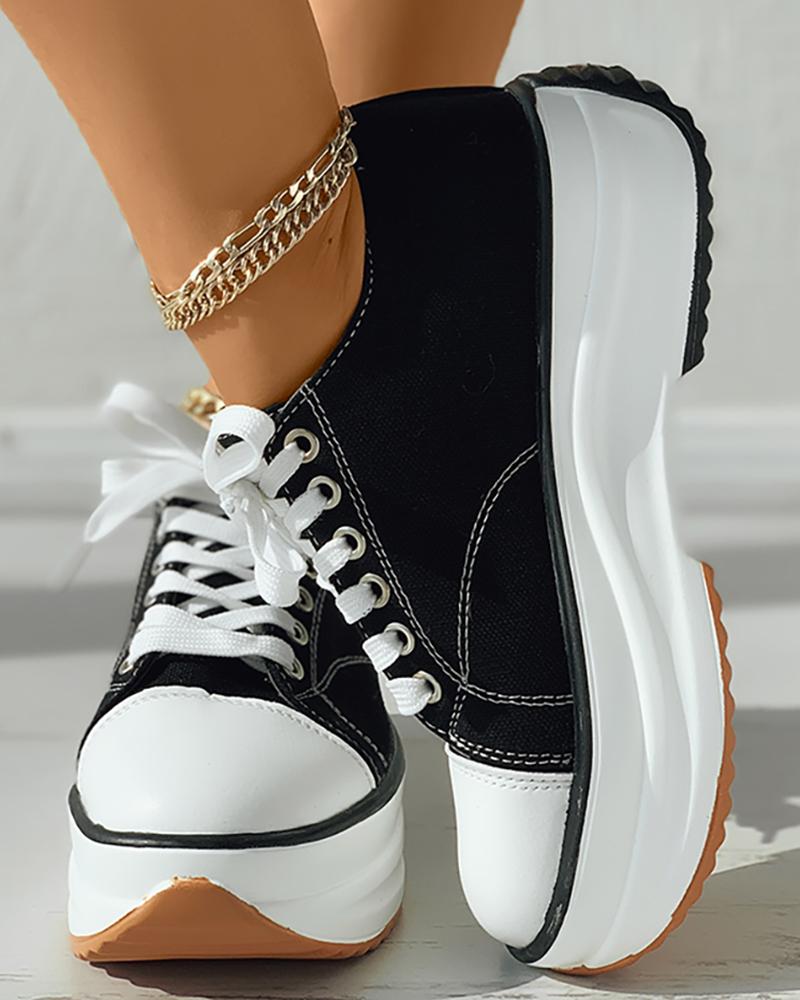 Contrast Paneled Lace-Up Canvas Sneakers