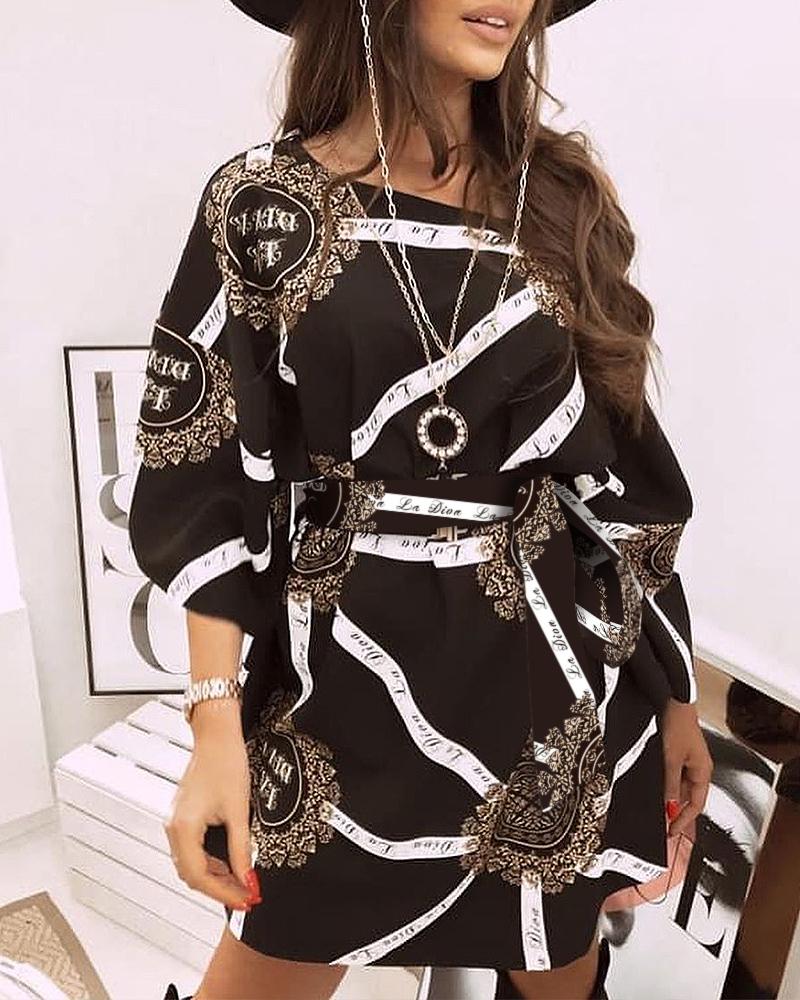 Style:Casual Type:Straight Material:97%Polyester,3%Elastane Neckline:Slash Neck Sleeve Style:Long Sleeve Length:Mini Pattern Type:Letter,Baroque Fit Type:Regular Occasion:Daily Package Include:1* Dress Fabric Elasticity:Slight Stretch