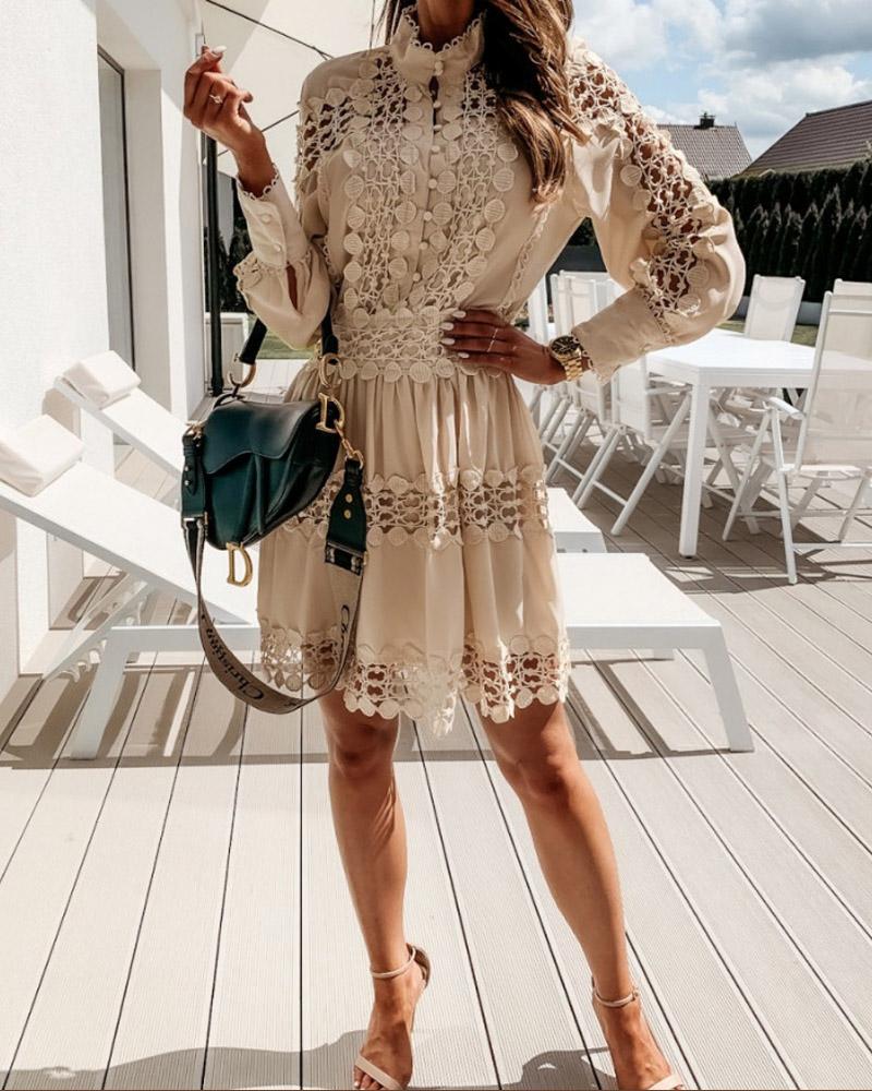 Style:Chic,Sexy Type:Straight Material:Lace,80%Polyester Neckline:Stand Collar Sleeve Style:Long Sleeve Length:Mini Pattern Type:Plain Decoration:Button Fit Type:Regular Occasion:Daily,Party Package Include:1* Dress
