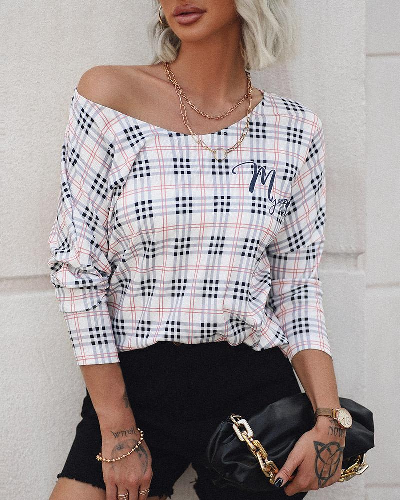 Plaid Print V-Neck Long Sleeve Top