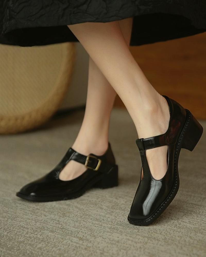 Style:Casual,Vintage Type:Chunky Material:PU Pattern Type:Plain Occasion:Daily Toe:Square Toe Heel Height:Low Heel Package Include:1*Heels HEEL HEIGHT(CM):: 3-5CM